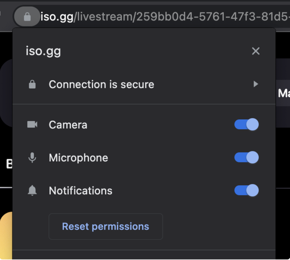 Make sure you grant webcam and microphone access to iso on your web browser.